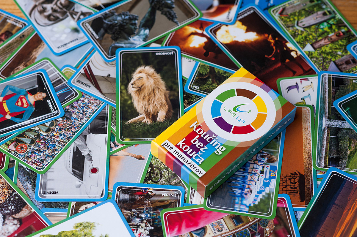 My Vám ponúkame inšpiratívny koučovací nástroj, ktorý Vám pomôže objaviť vašu vlastnú definíciu šťastia prostredníctvom 280 sebakoučovacích otázok, 56 tematických obrázkov a inšpiratívnych výrokov. „Karty Koučing bez kouča na každý deň“ je metodický rozvojový koučovací nástroj spoločnosti Life Up, ktorý obsahuje návod na definíciu 7 dôležitých oblastí, ako sú napríklad šťastie, vzťahy alebo sebauvedomenie. Sú určené pre všetkých, ktorí túžia po spoznávaní svojich potrieb, túžob či talentov a úspešnom riadení vlastného života.